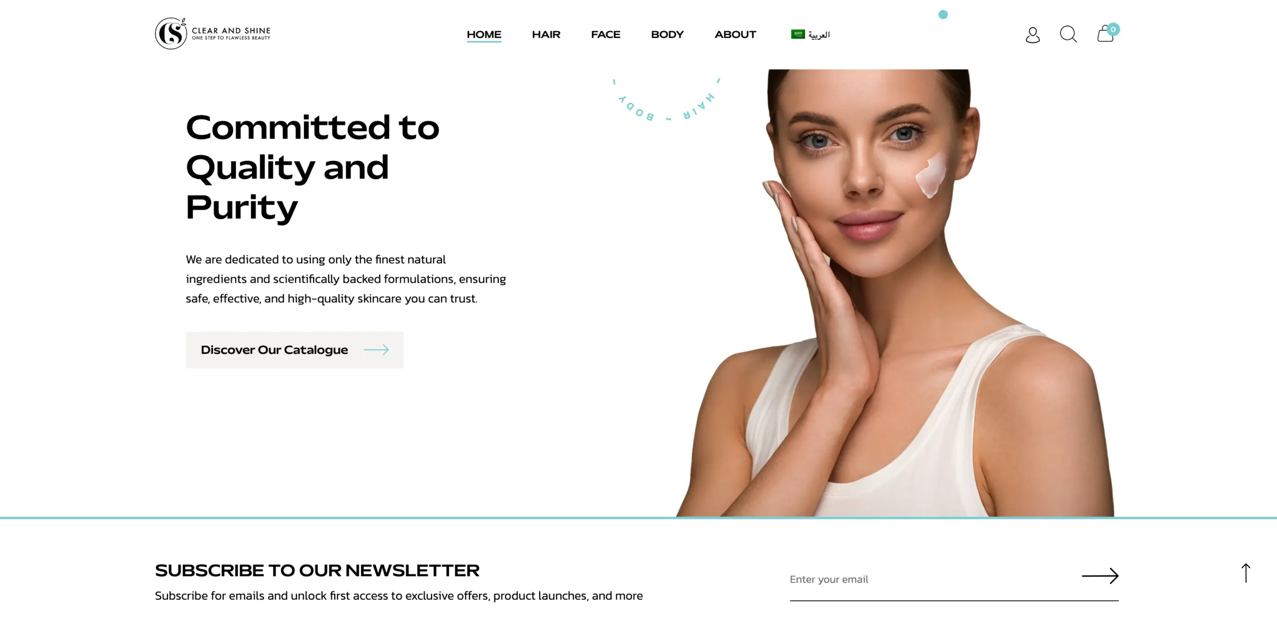 Clear & Shine wanted an online presence that reflects its identity as a premium skincare brand — scientific yet elegant. They needed a storefront that showcases product quality, educates customers, and drives sales with a clean, minimal feel.